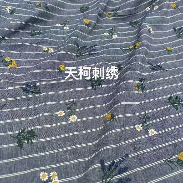 TMC-E15099-M (100% Cotton Yarn Dyed Embroidered with Multicolor Flowers All Over)