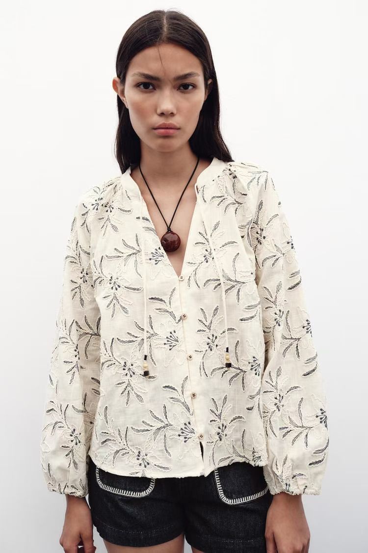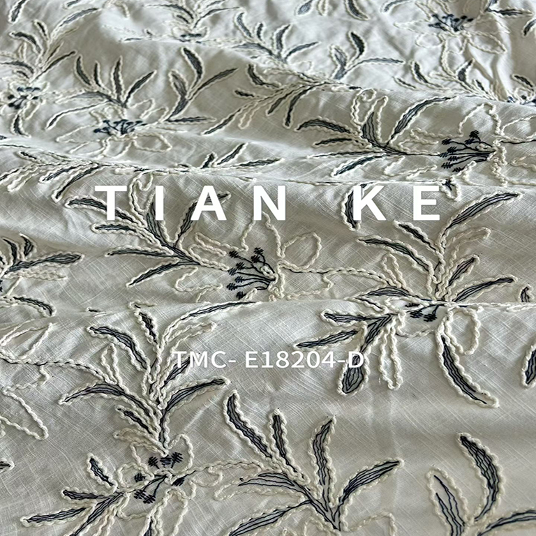 TMC-E18204-D (Cotton Slub Base wtih Thick Cord Yarn Flower Embroidery )