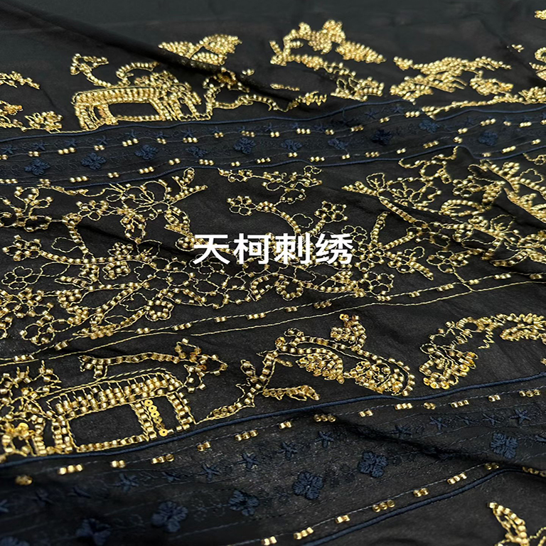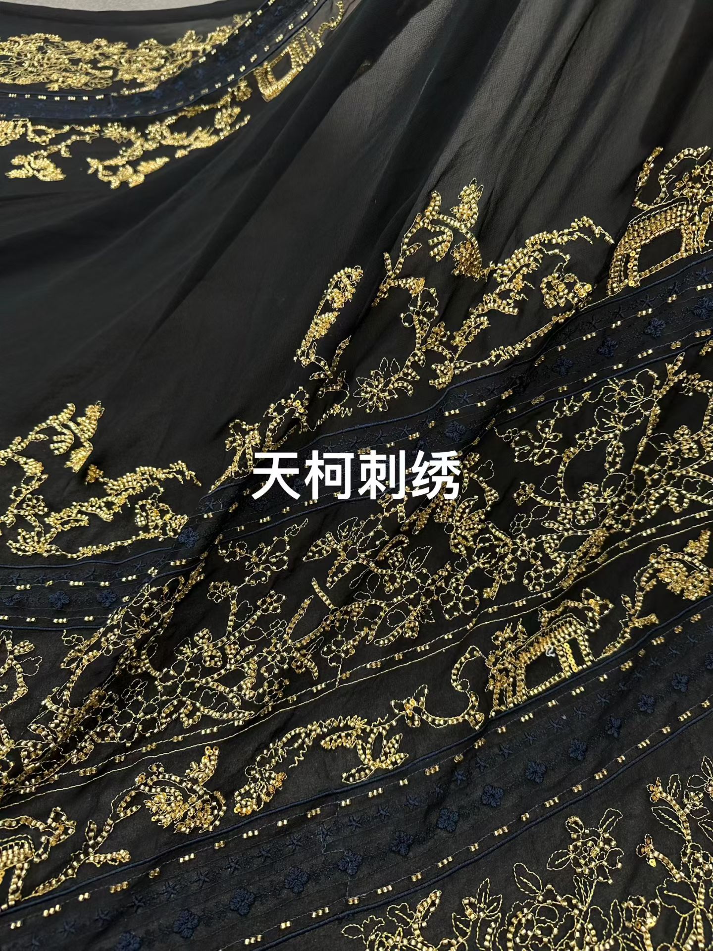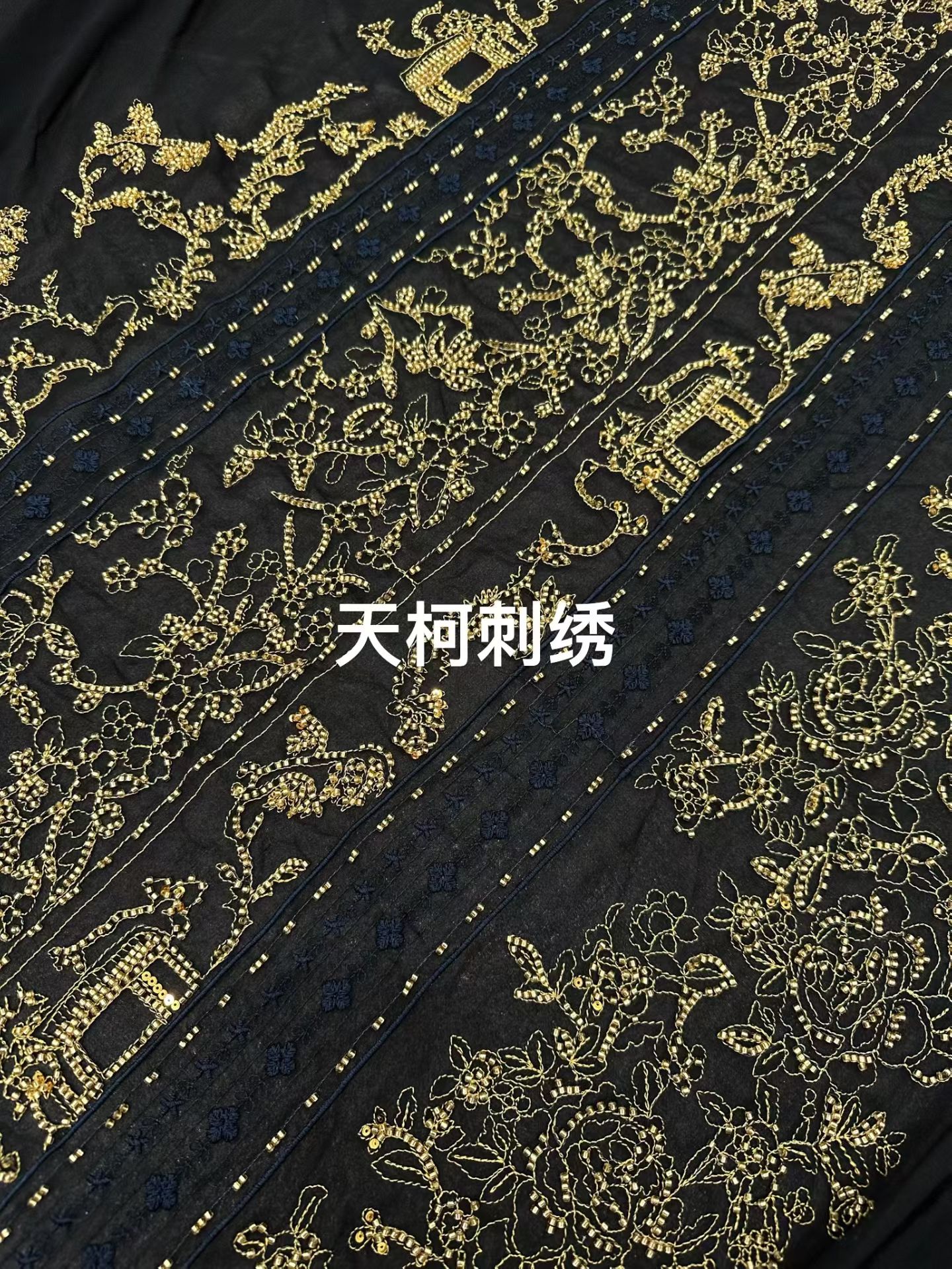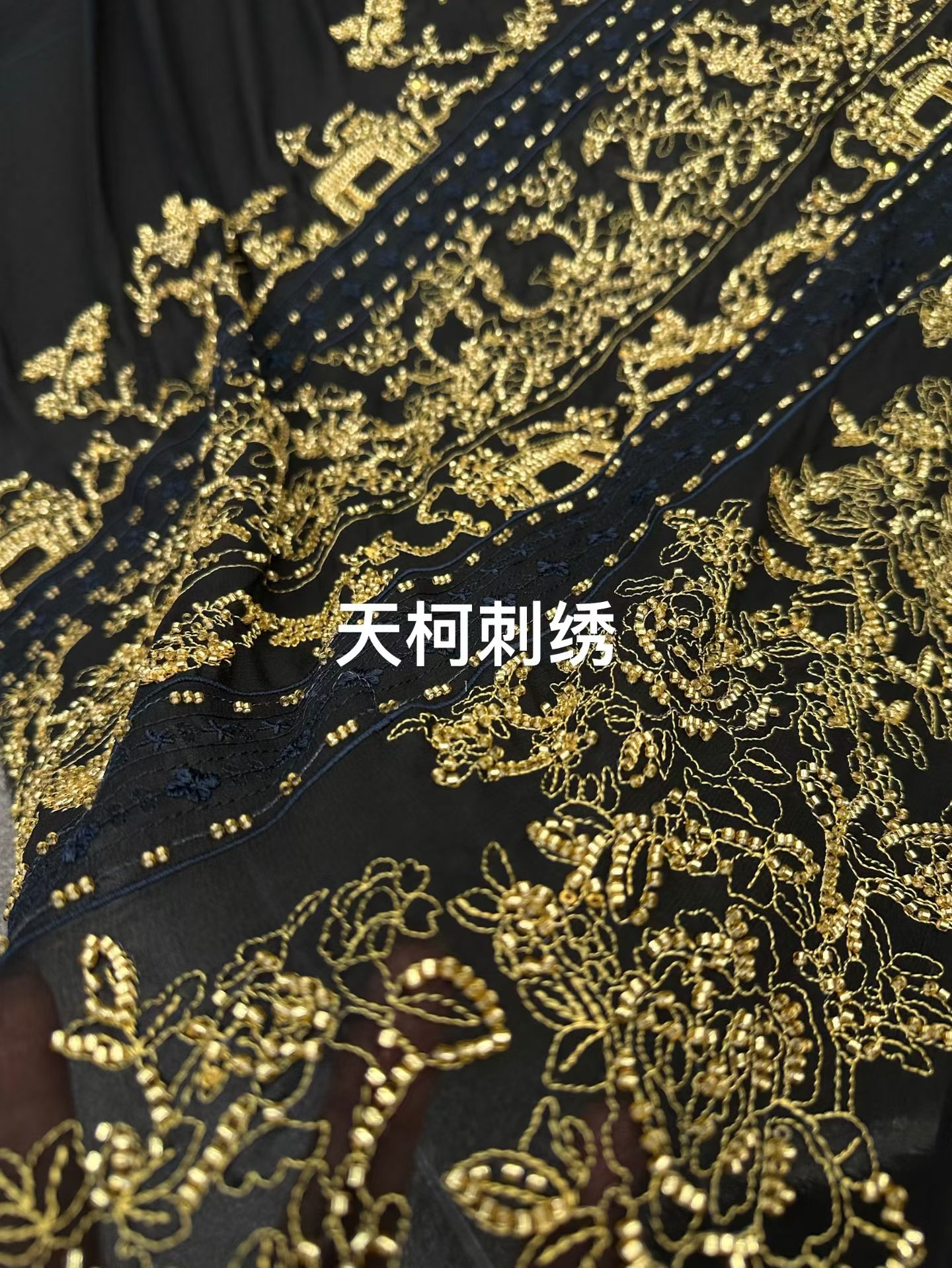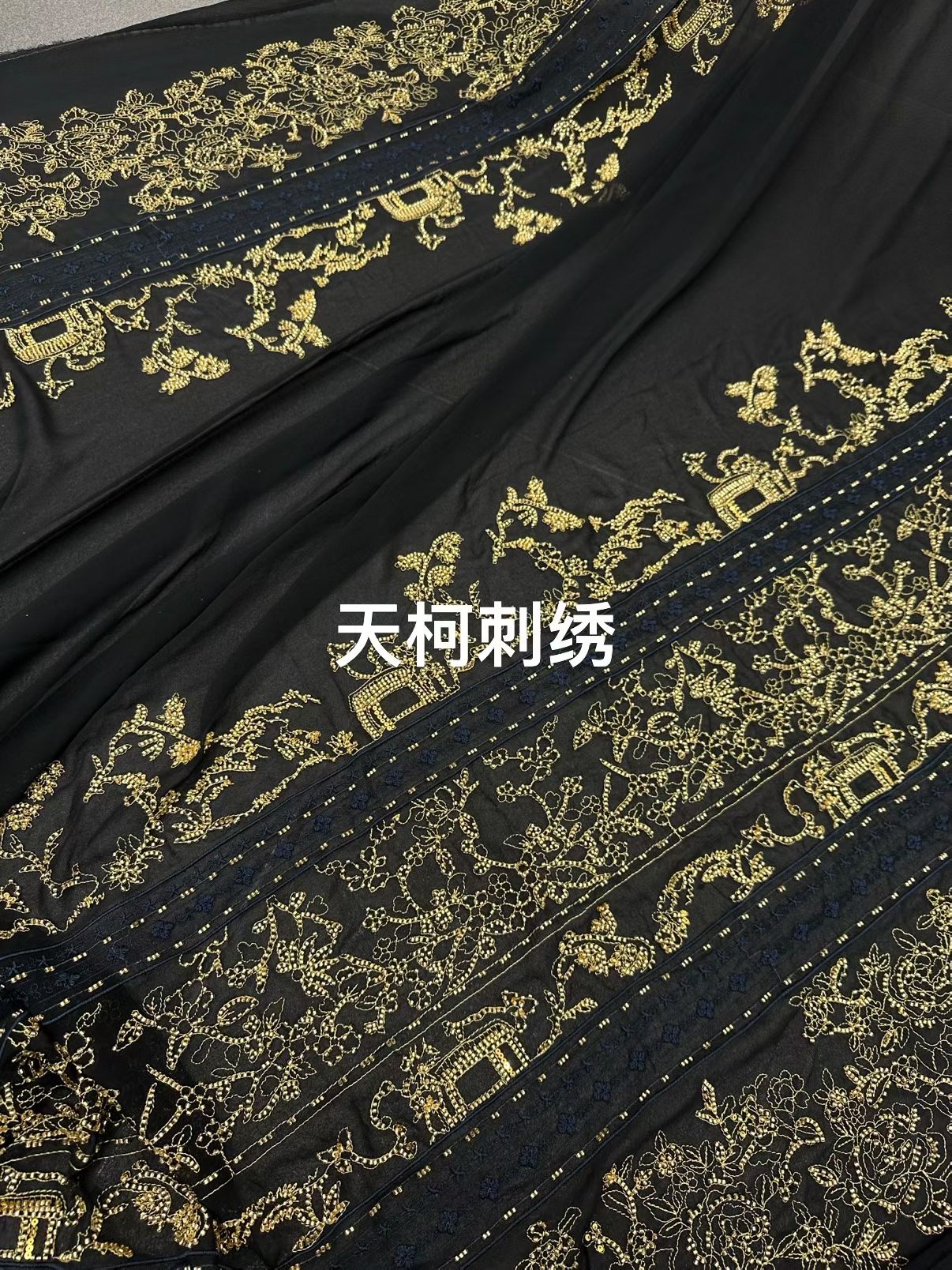 TMC-E18904-A (Beading Panel Double Border in Gold Color On GGT chiffon Base )