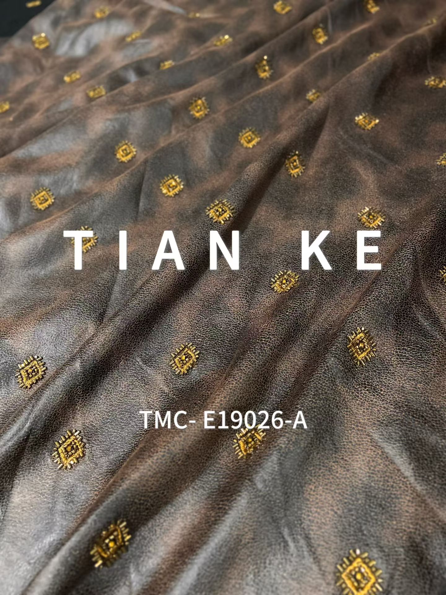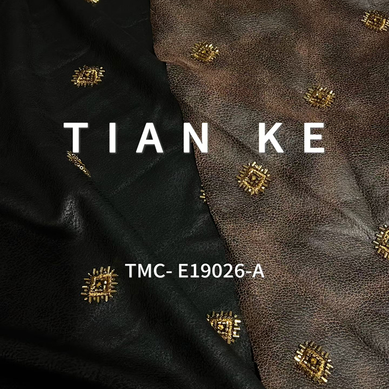 TMC-E19026 (Square Shaped Desgin Formed wth Tube Beads an Abnormal Beads on Printed Leather)