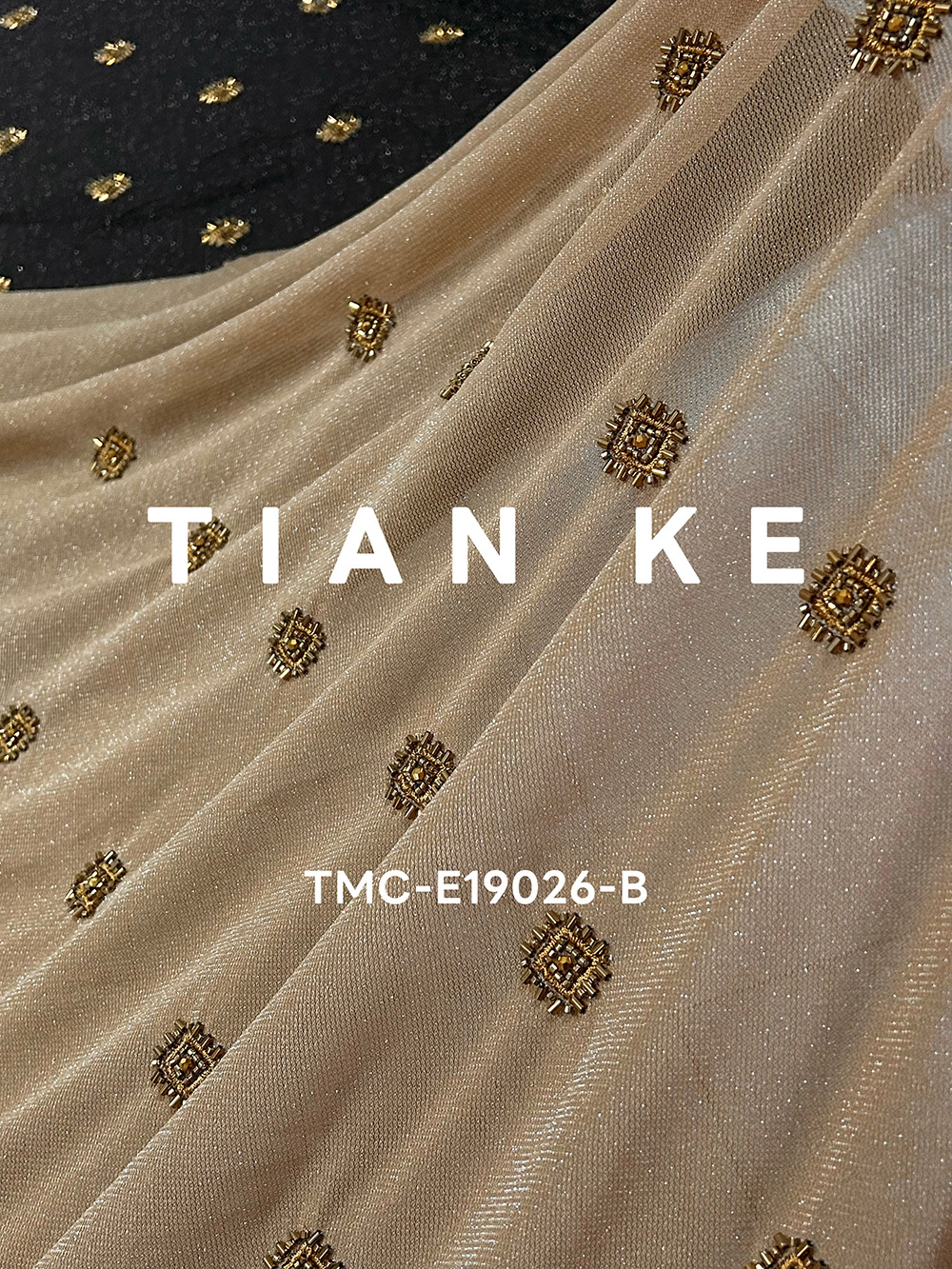 TMC-E19026-A(Square Shaped Desgin Formed wth Tube Beads an Abnormal Beads on Nylon Sp Knitting Base)