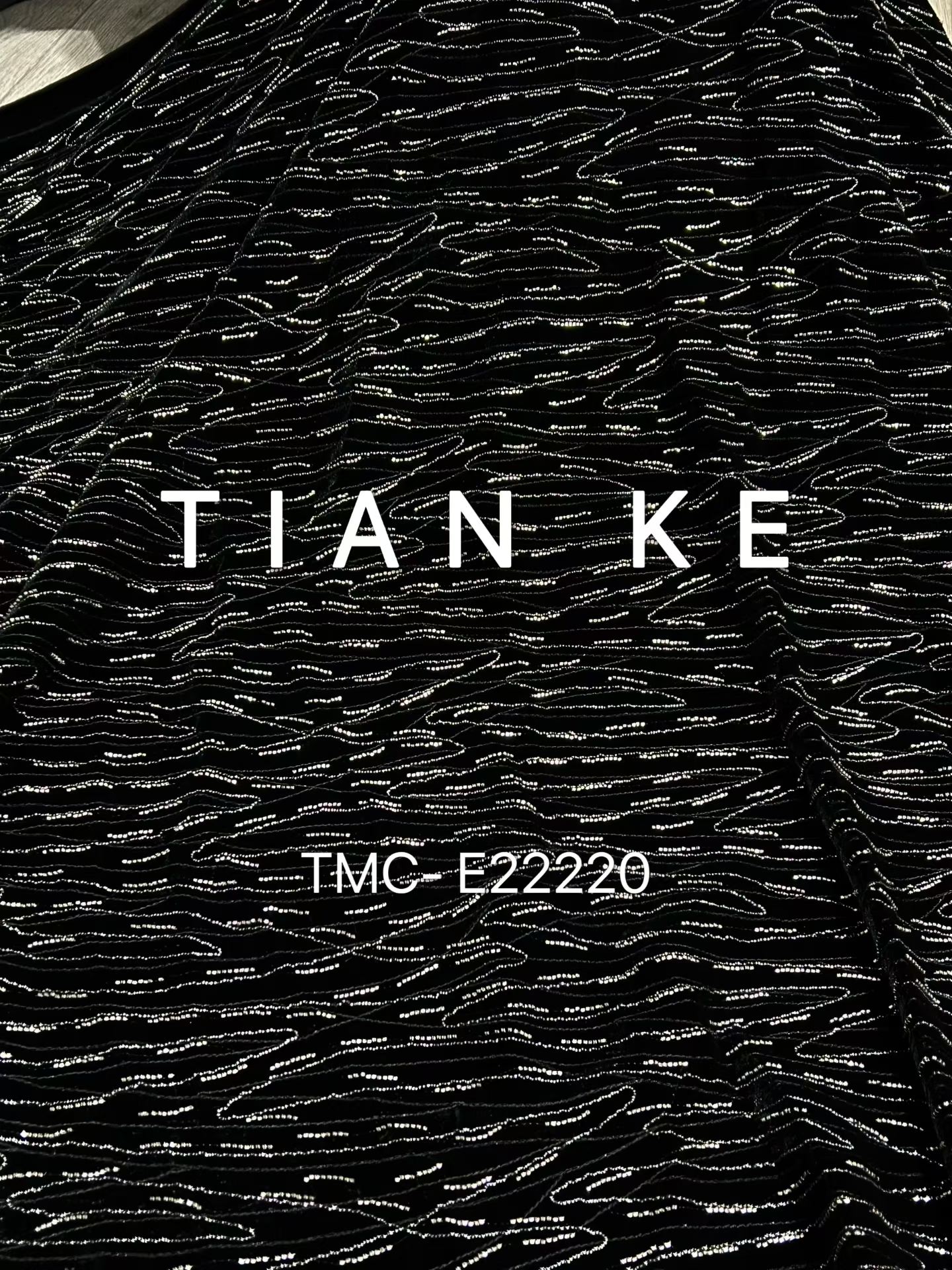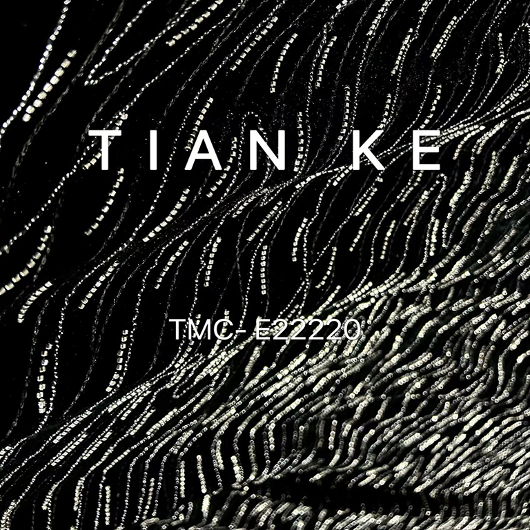 TMC-E22220 (Silver Ocean Waves with Lurex Yarn and Tube Beads on Knitting Sp Velvet Fabric)