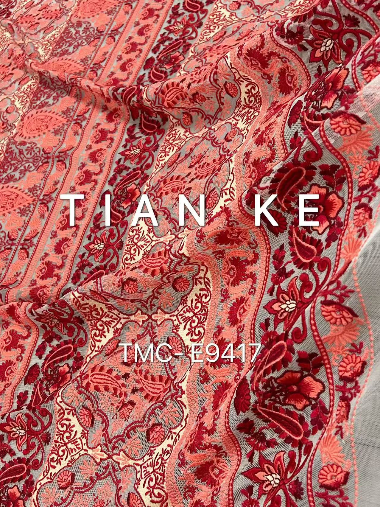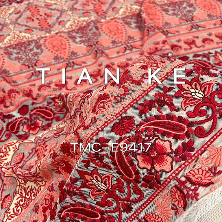 TMC-E9417 (Heavy Emb Stitches Emb in Multi color On Polyester Tulle Mesh Fabric For Specialty)