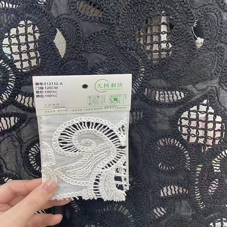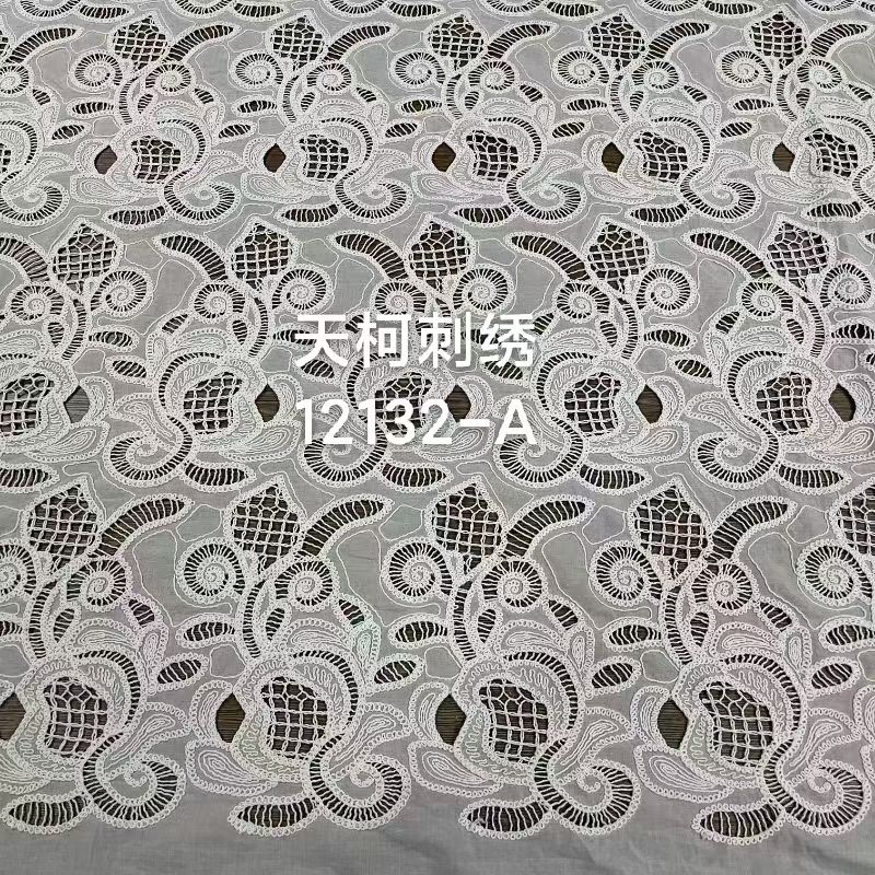 TMC-E12132-A (Cord Yarn Laser Cut Embroidery on Cotton Voile Fabric)
