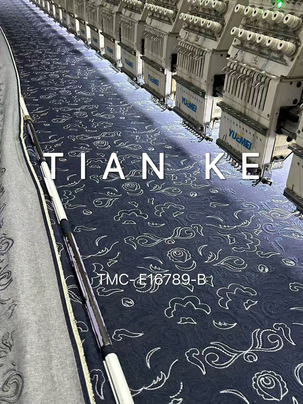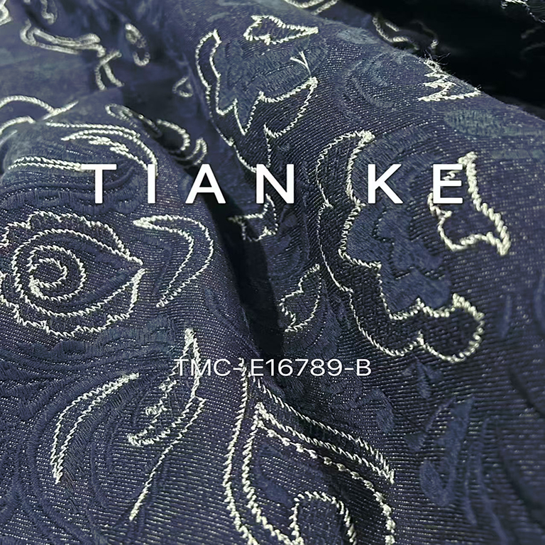TMC-E16789-B (Cotton Denim Natural Blue Embroidery with Two Tone Yarn Color )