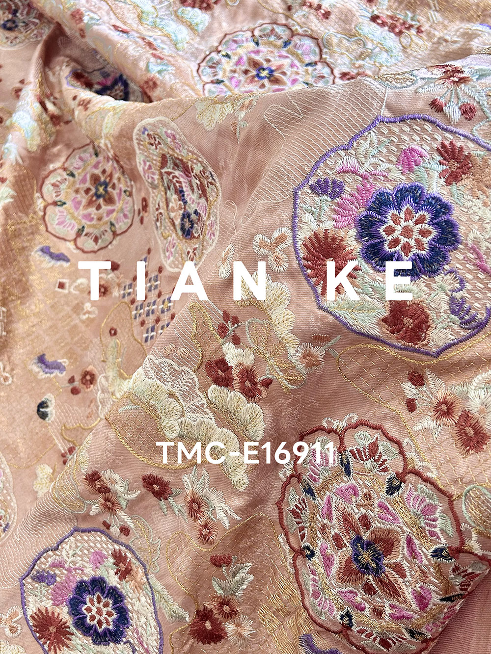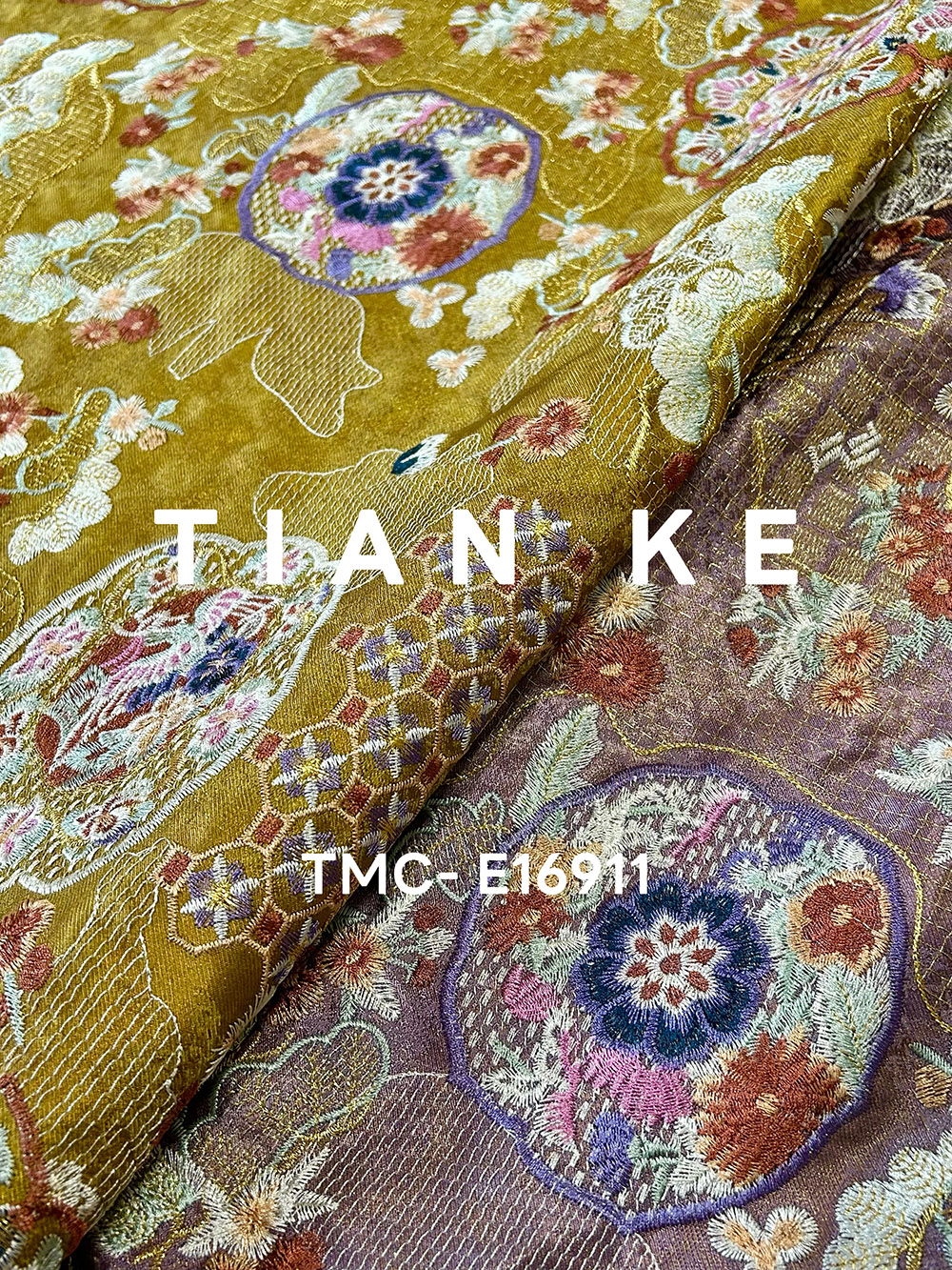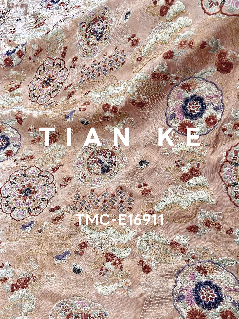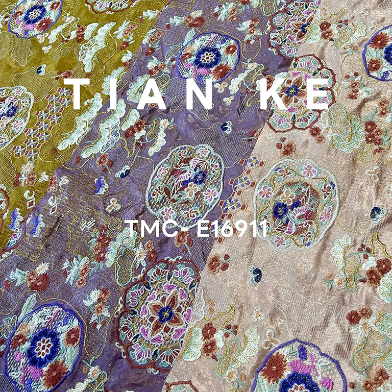 TMC-E16911 (Chinese Traditional Element Emb in Multi Color On Viscose Rayon Linen Blended Fabric)