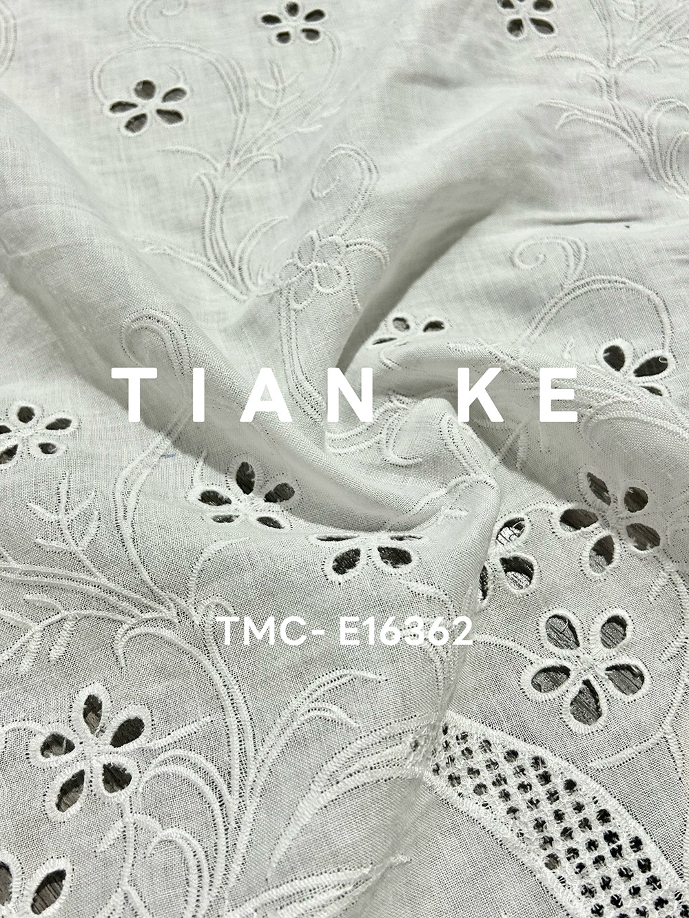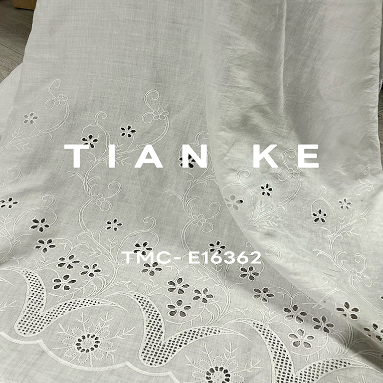 TMC-E16362 (Border Eyelet Embroidery on 100% Linen Fabric )