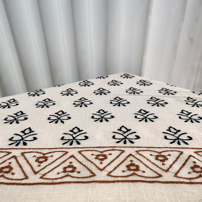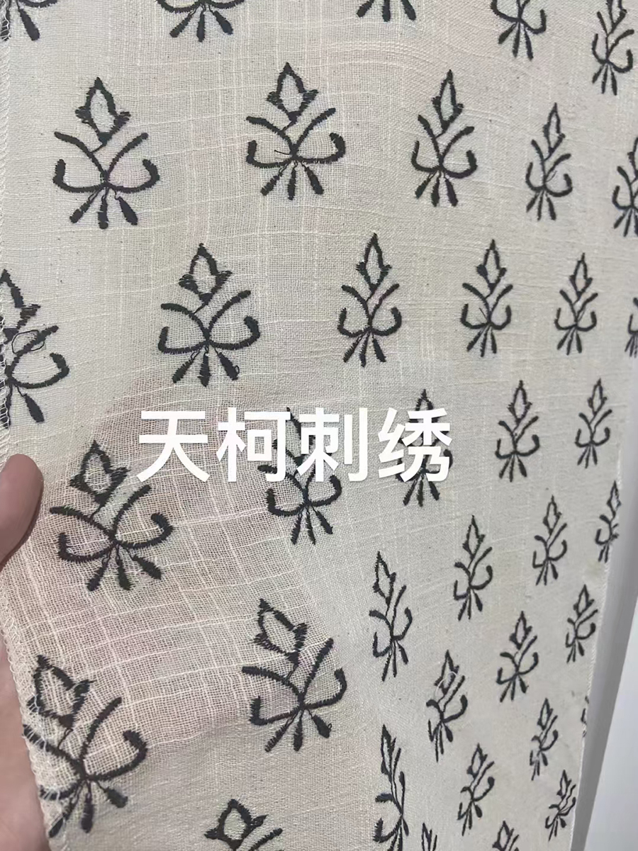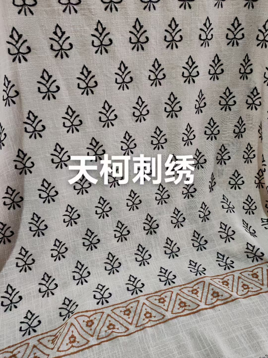 (TMC-E16118) Beautyful Border Design Embroidered on 100% Cotton Slub Fabric with Special Wash Effect
