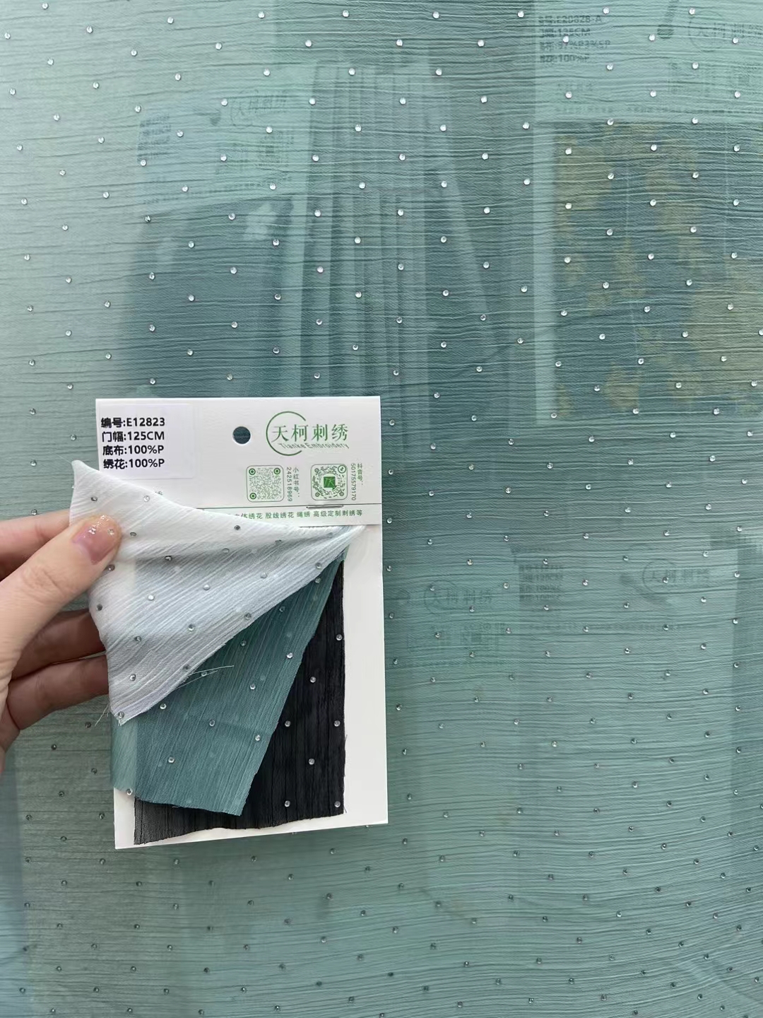 (TMC-E12823) Stones Glued All Over on Chiffon Yoryo Fabric
