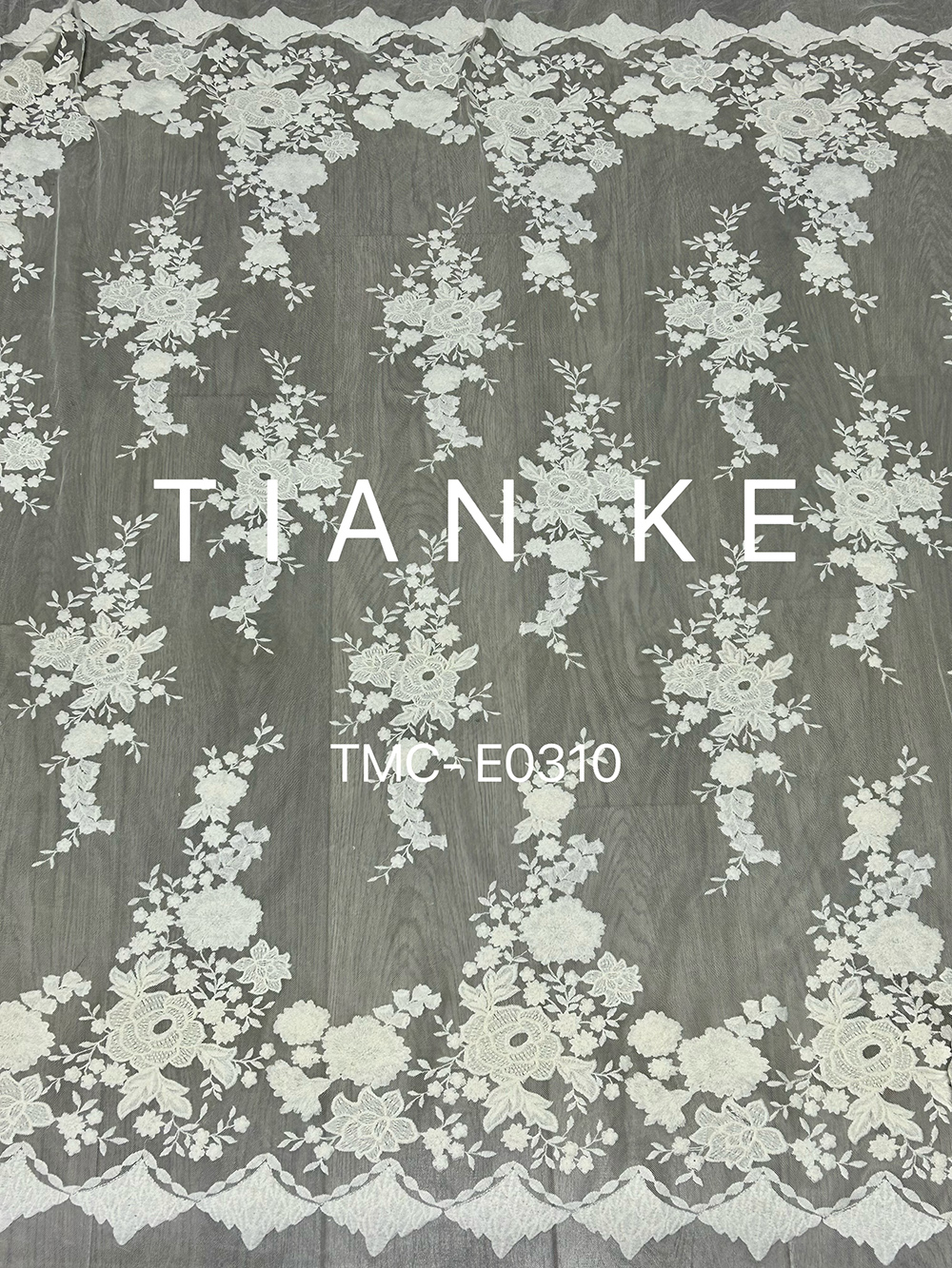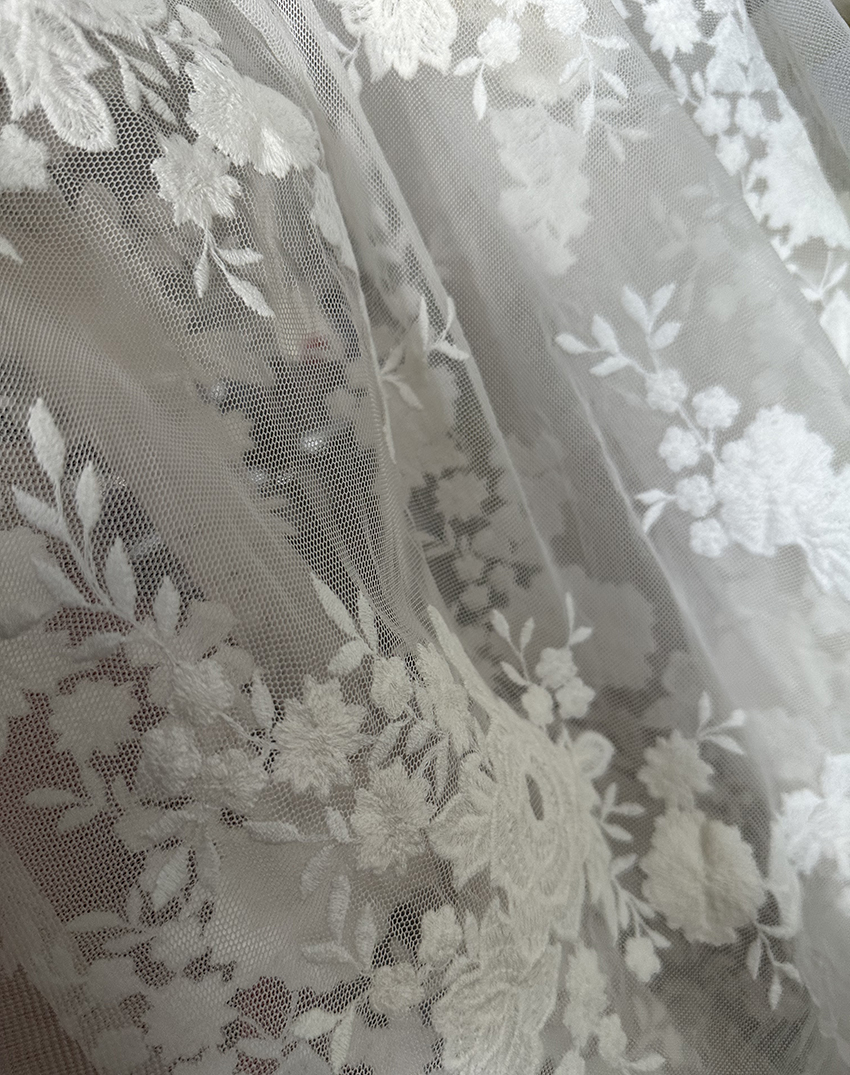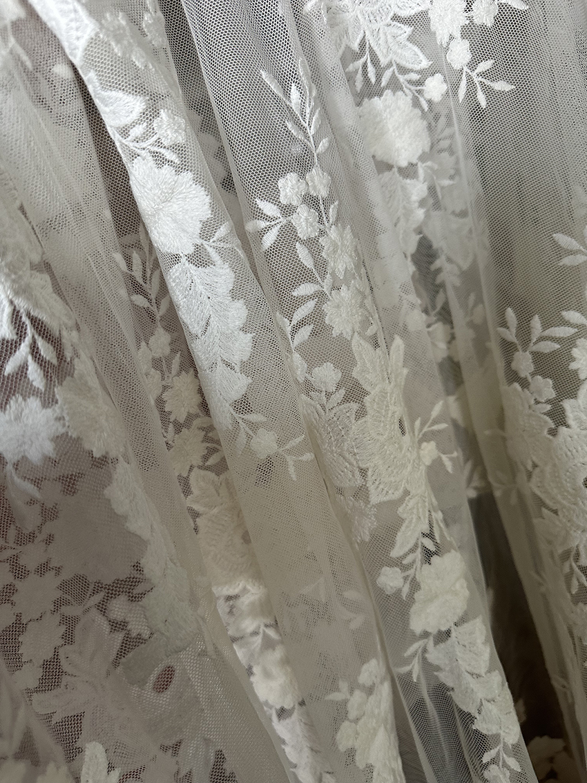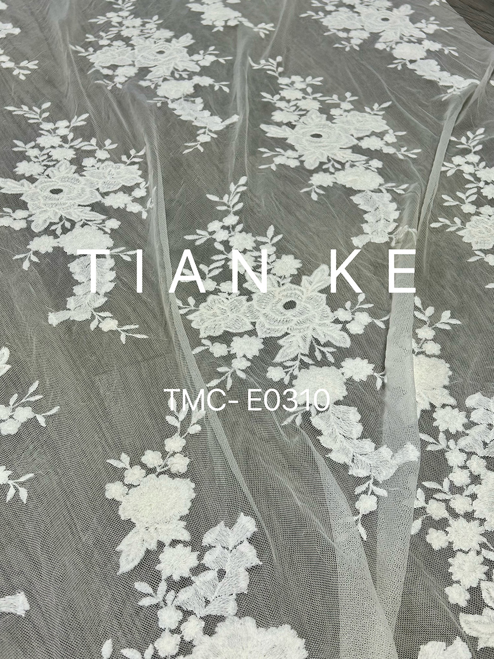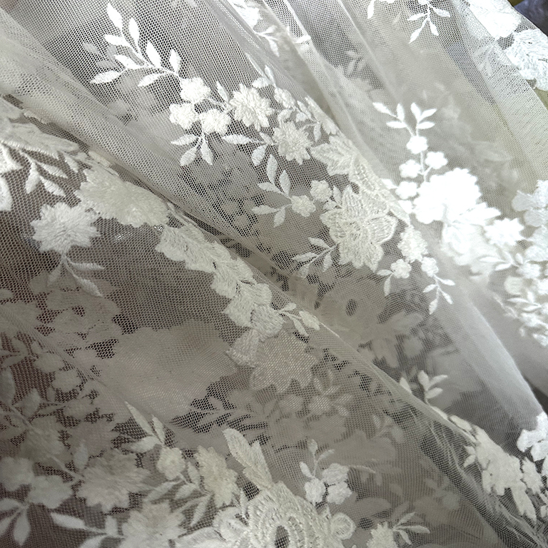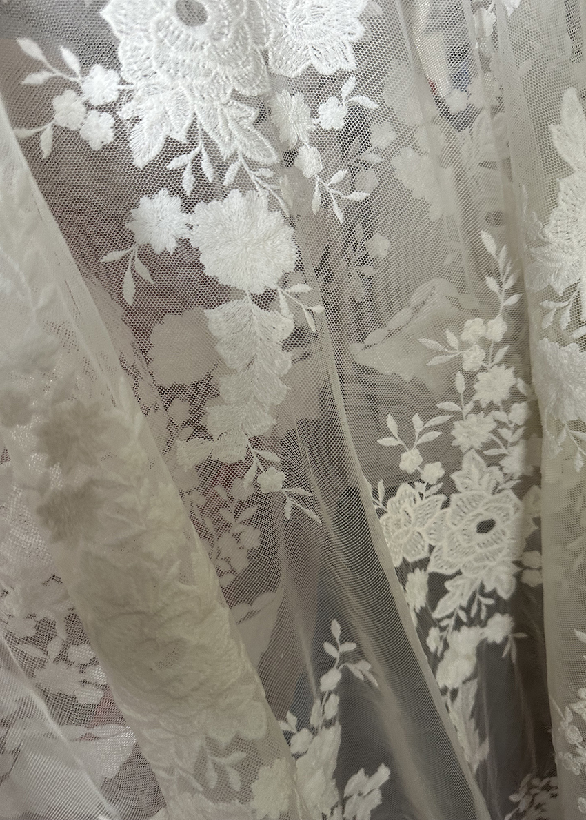 (TMC-E0310) Beautyful White Flowers Embroidered on Soft Touch Nylon Tulle Mesh Fabric