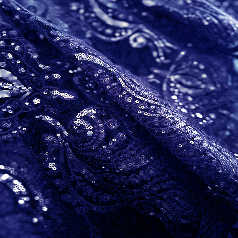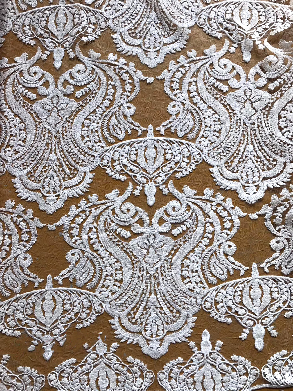 (TMC-E4378) Classical Crown Flower In 3mm Sequins Embroidered on Soft Nylon Lace Fabric