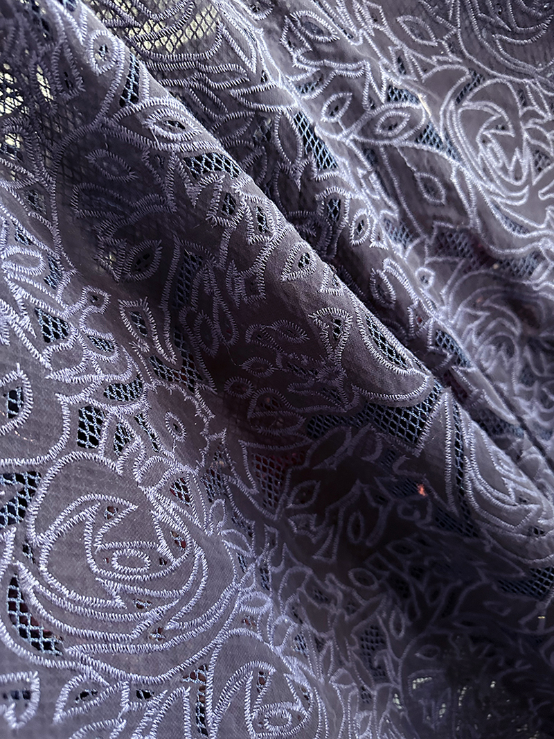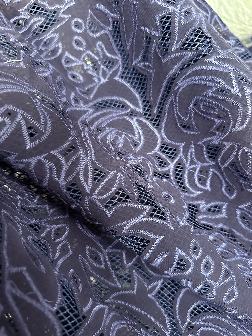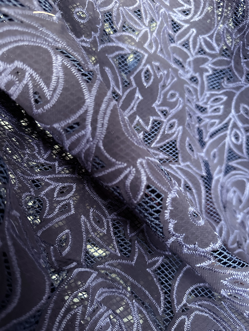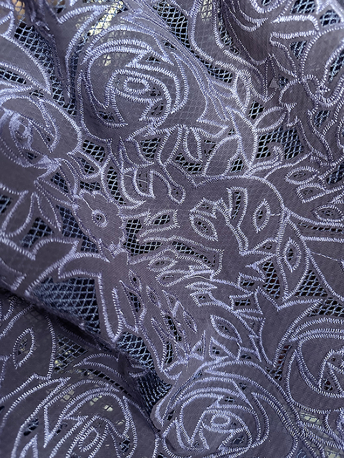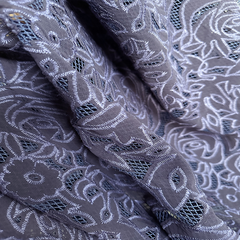 (TMC-E5105-B) One Layer of Poly Chiffon Laser Cutted and Embroidered on Another Layer of net Fabric