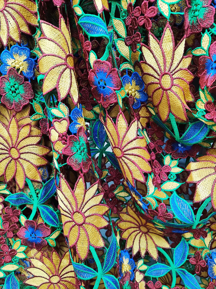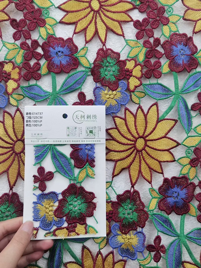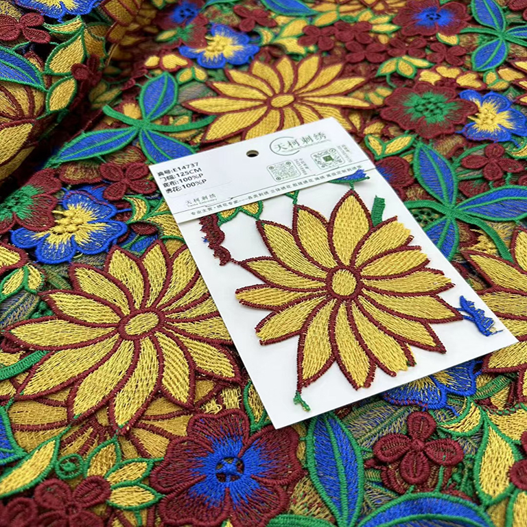(TMC-E14737) Multi Color Chemical Lace Embroidery of Beautyful Flower Design