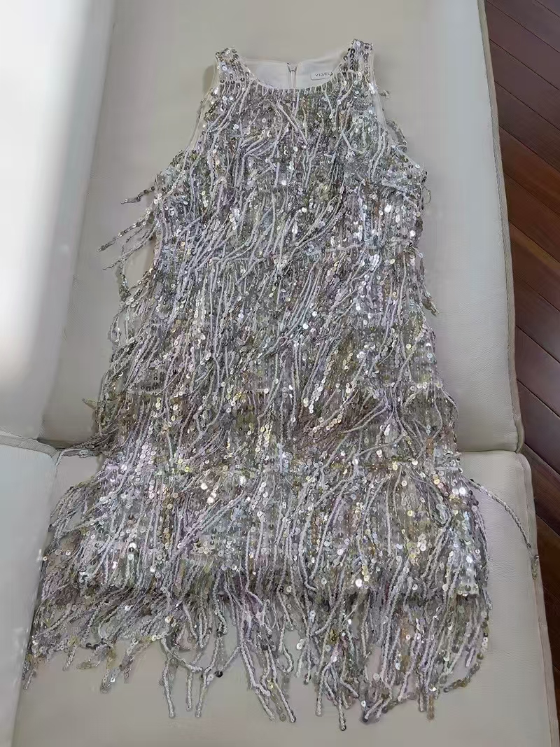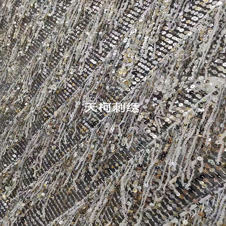 (TMC-E25202-C) Fancy Fringe Sequins Embroidery on Tulle Mesh Fabric