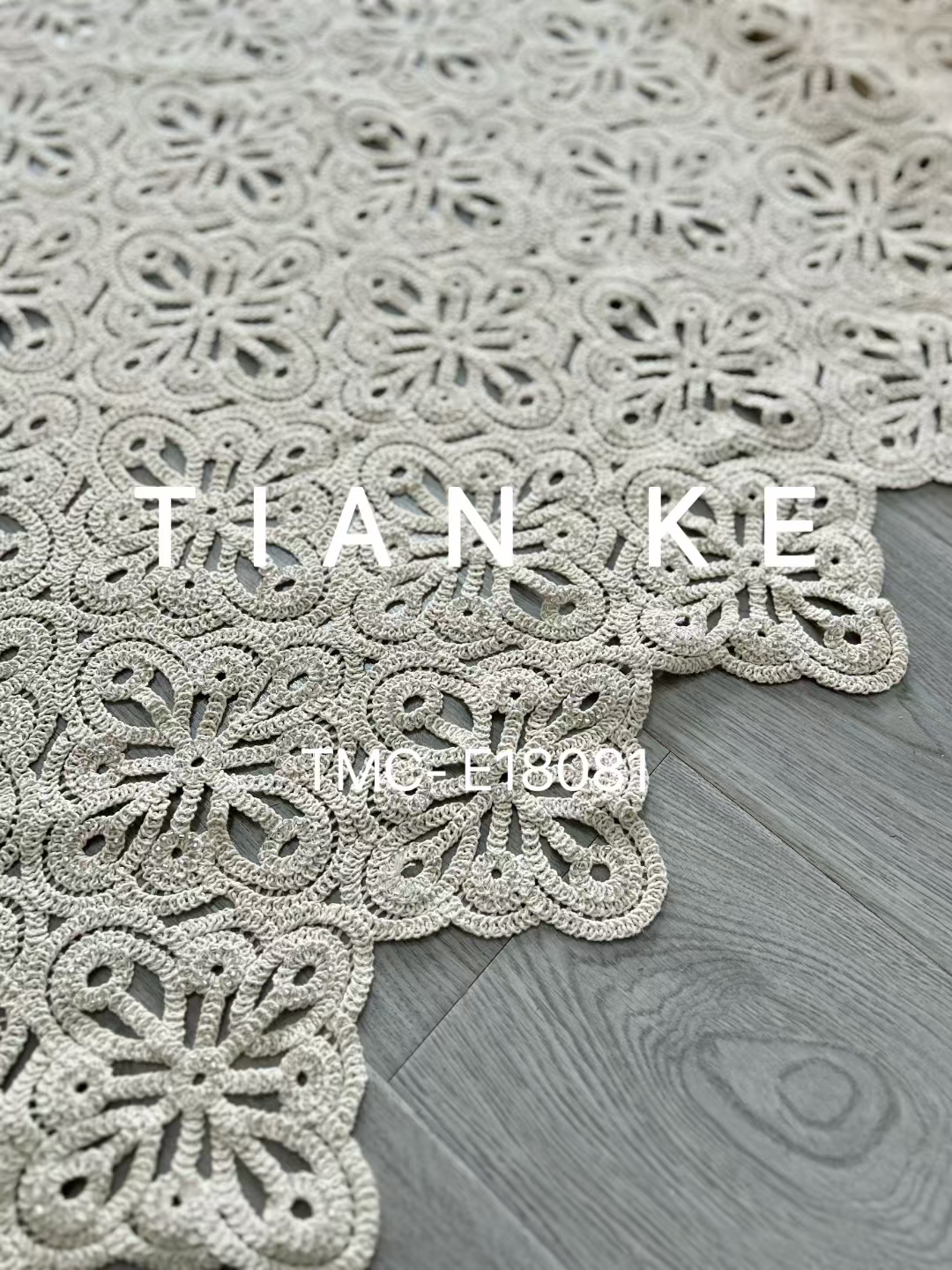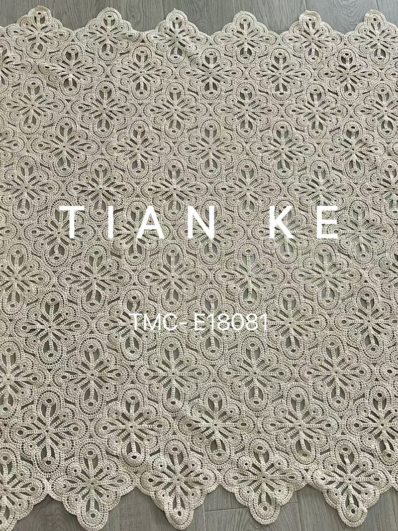 (TMC-E18081) Cotton Cord Thread All Over Guipure Embroidery Decorated with Beadings